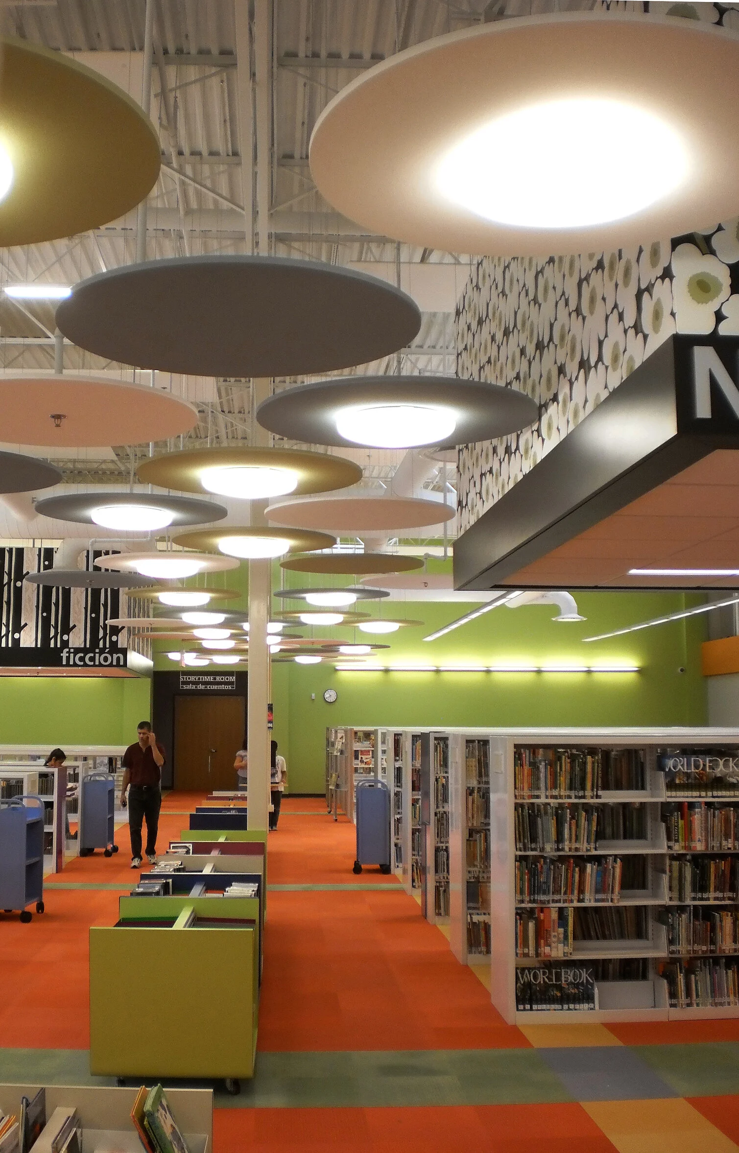 “The McAllen Main Library represents an important shift in American Cultural attitudes towards tolerating big box, suburban structures. The interior spaces have been dramatically transformed from a warehouse to a place of intimacy.”