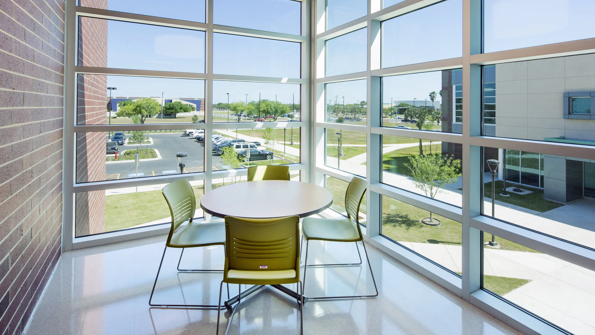 This building is interesting because it essentially has 4 fronts. With 6 exits, students can approach this building from all four sides. It faces Pecan Boulevard to the North, the STEM building to the East, the West Academic building to the South and the main parking lot to the North and West.